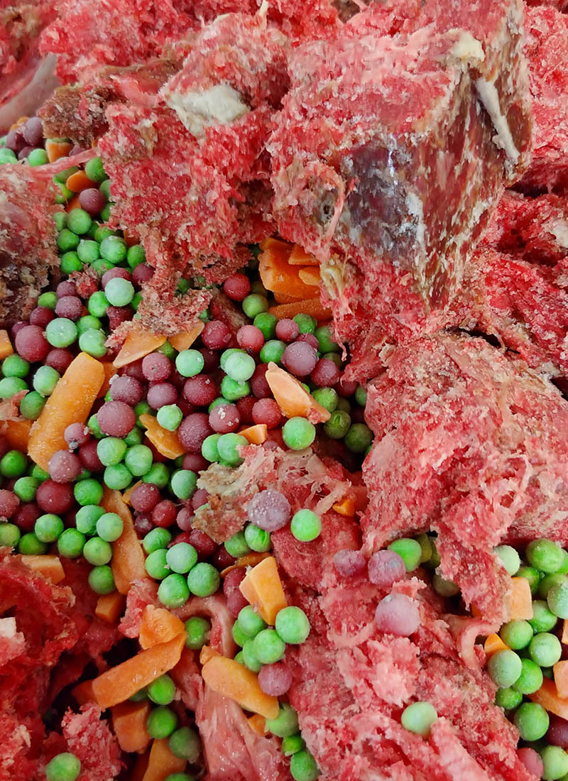 FreshFrozen for Pets wordt bereid door mensen die een opleiding hebben genoten om met echt vlees te werken. Wanneer ze onze voeding bereiden starten ze van echt spiervlees. Afhankelijk van het recept voegen ze nadien ook kwalitatieve organen toe zoals lever, tong, long enz. In een aantal recepten voegen ze pens toe. We proberen onze dierlijke grondstoffen maximaal lokaal te betrekken.